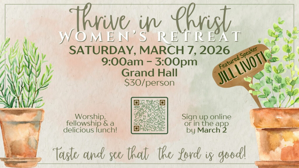Our hearts are connected to Christ and each other by gathering, growing, and going together. We seek God’s grace and power to unite as one body and one Spirit in Him – one hope that belongs to our call as servants together in Christ. With gratitude, we serve Him as our one Lord, with one faith, one baptism, all for our one God and Father of all. We invite you to link hearts and hands, walking together as women who gather, grow and go, righteous in Him as we thrive in Christ!”